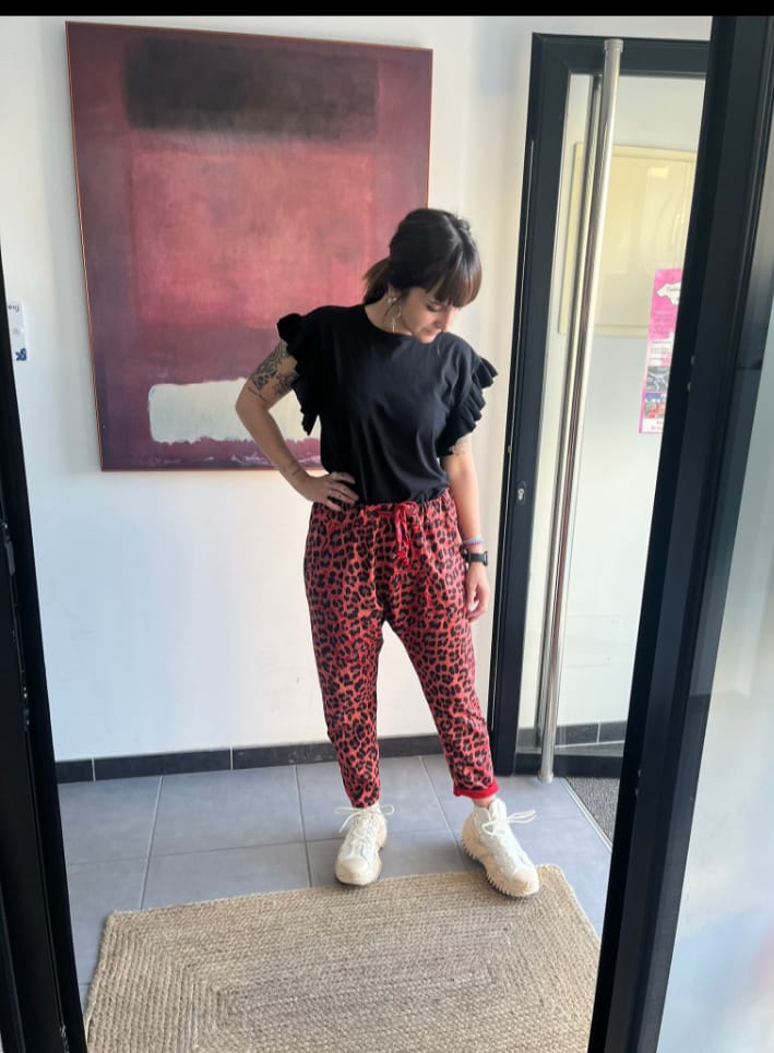 Pantalón de algodón cagón, con goma en la cintura y cordón.